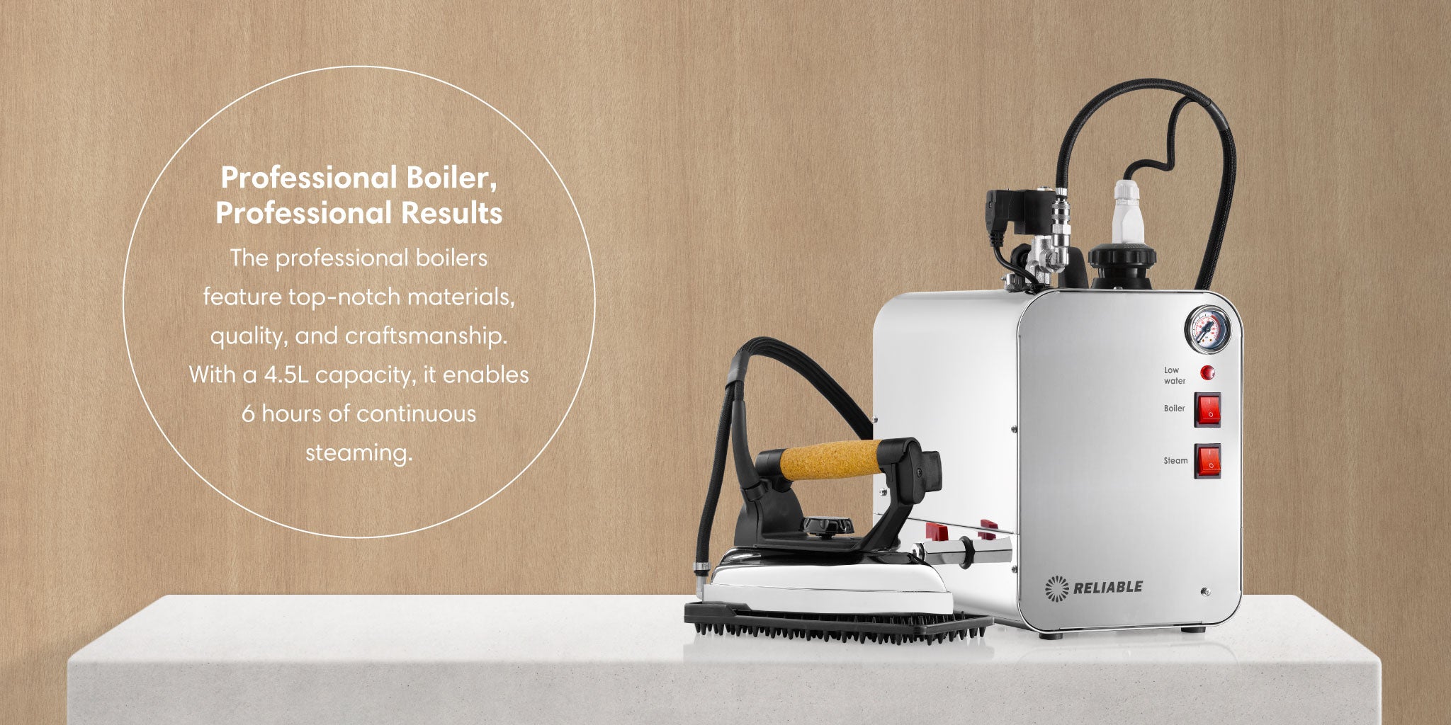 The 6000IS is our mid-size manual fill unit with a 4.5L boiler tank, 4.1 bar pressure, all stainless steel construction, and Made in Italy. It’s built for all-day, everyday use. It features 4 safety systems, a blowdown valve to help maintain its life and performance, a heavy-duty contactor switch, and the 2100IR 32-chamber steam iron. The 6000IS is for those that demand the very best performance but don’t require more than 4.5L capacity.